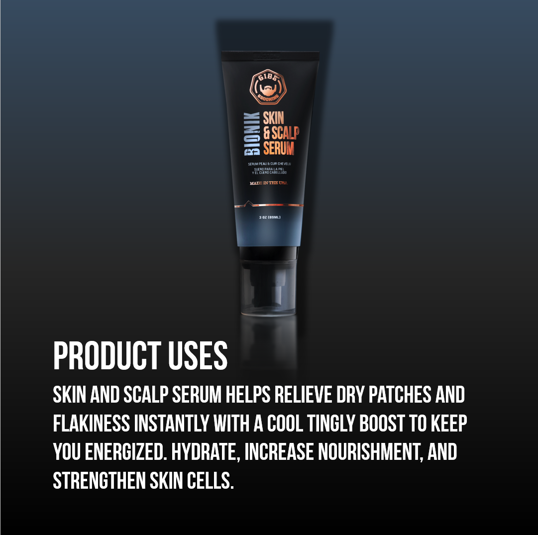Skin and scalp feel drier than summer asphalt? GIBS Bionik is an explosive new man tonic to help relieve dry patches and flakiness caused by dessert dry skin.
