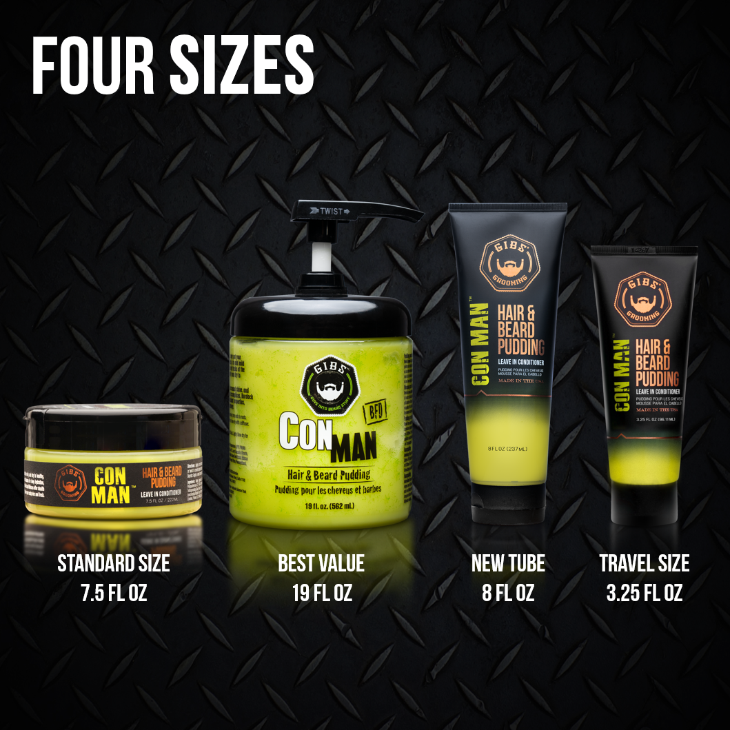 Beard and Hair Pudding - That’s no typo! Beard and hair hydration is what you get with GIBS Con Man! Hydrogenated Castor Oil, Guar, & Hibiscus Extract are packed into this pudding to provide the most moisture possible for your hair and skin! Use Con Man daily for your moisturizing, foundation styling aide or use it alone for a natural, silky finish!
