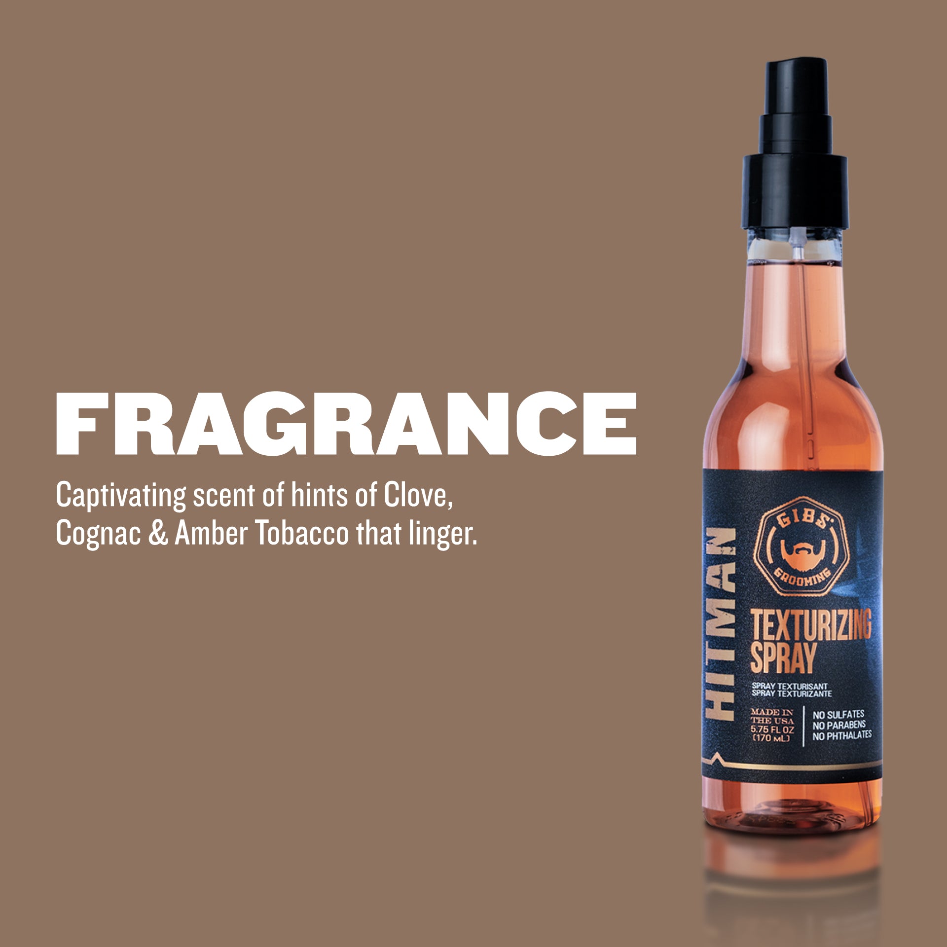 You just found your new go-to styling aide! This extremely versatile spray is fortified with Keratin Protein and Holy Basil for improving your hair’s strength and elasticity! Hops help prevent any possible future dandruff or hair loss, and Hydrogenated Castor Oil deeply conditions and repairs split ends! You can even spray GIBS Hitman along your hairline to help prevent pimples and breakouts! Fragrant hints of Clove, Cognac, & Amber Tobacco will keep you comin' back for more as you build this layerable texturizing spray to styling perfection!