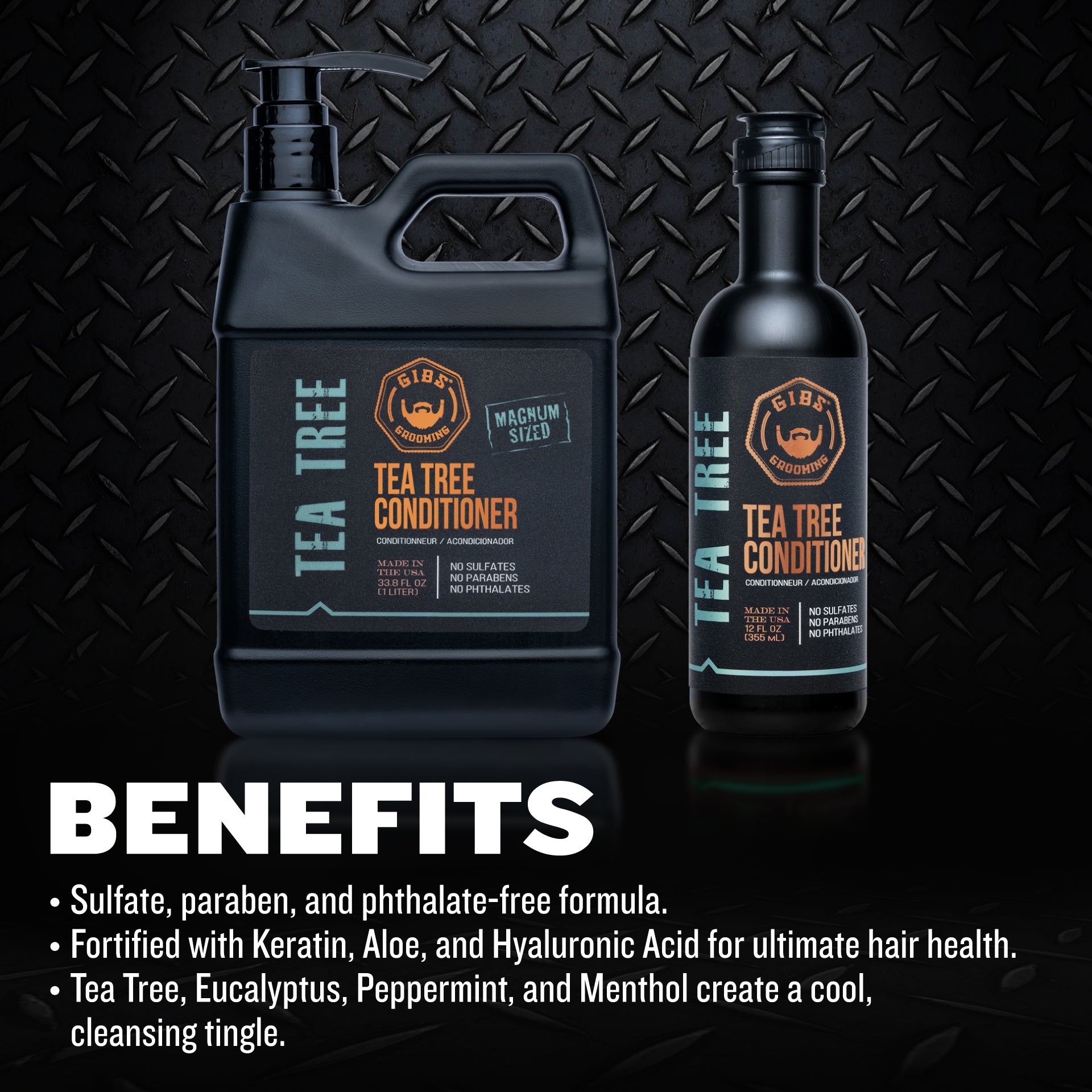 Keep your hair and scalp healthy and hydrated with GIBS Rejuvenating Tea Tree Conditioner. Our SULFATE, PARABEN, AND PHTHALATE-FREE FORMULA is fortified with Keratin, Aloe, and Hyaluronic Acid helping to strengthen, smooth, and detangle. Tea Tree, Eucalyptus, Peppermint, and Menthol come together for a cool, cleansing tingle that will leave you and your scalp feeling revitalized and renewed. GIBS Tea Tree Conditioner is the perfect rejuvenating follow up to GIBS Tea Tree Shampoo.